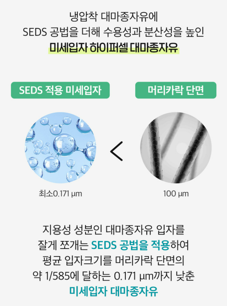 일반 대마종자유보다 입자 크기가 1/585 수준으로 작아요.